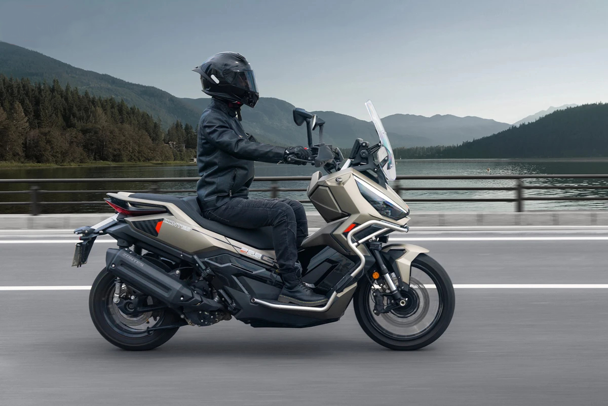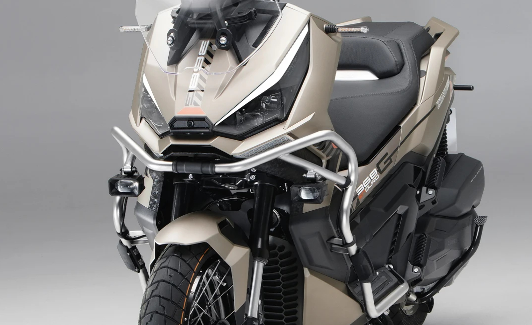 368G är en mångsidig och modern adventure-scooter med en kraftfull 368 cm³ motor, avancerad teknik och stilren design. Med funktioner som 8-tums TFT-display, två körlägen, elektriskt justerbar vindruta och rymligt förvaringsutrymme är den idealisk för både stadskörning och äventyr. Dess lättviktsram, robusta fjädring och säkerhetssystem som ABS och däcktrycksövervakning gör den både pålitlig och bekväm för långa resor. En perfekt kombination av prestanda, teknik och praktiska egenskaper.